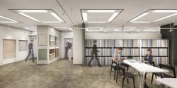 フロア全体のカラースキームは、シックな印象のモノトーン系でコーディネートしていて、セミナーの開催やビジネスユーザーをはじめ自由見学の来館者も利用できるフリースペースも設けています。